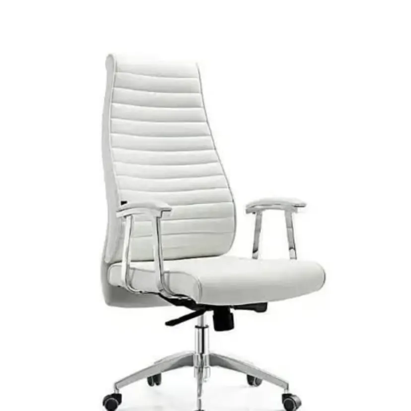 Premium White Executive Office Chair Upgrade your workspace with this sleek and modern white executive chair, designed for both comfort and style. Featuring a high-back design with soft padded cushioning, this chair provides excellent support for your back during long working hours. The smooth leather finish gives it a luxurious look that fits perfectly in any office or home setup.