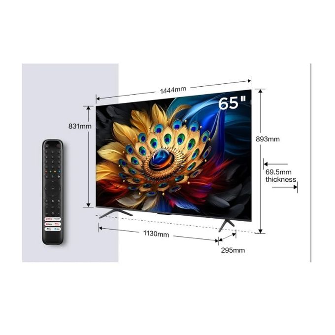 The Slim & Uni-Body Design of the TCL 65 inch Qled blends seamlessly into any room. Its modern, minimalist design ensures that the focus remains on the content while adding a touch of elegance to your home.